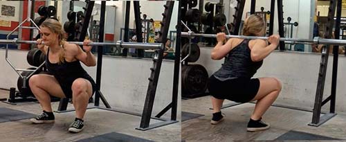 4. Quando agachar permaneça com as costas eretas e peito estufado, sempre olhando para frente, pois desta forma, é evitado de sair da posição anatômica do exercício; não dando margens para lesões na coluna. Veja a imagem abaixo: